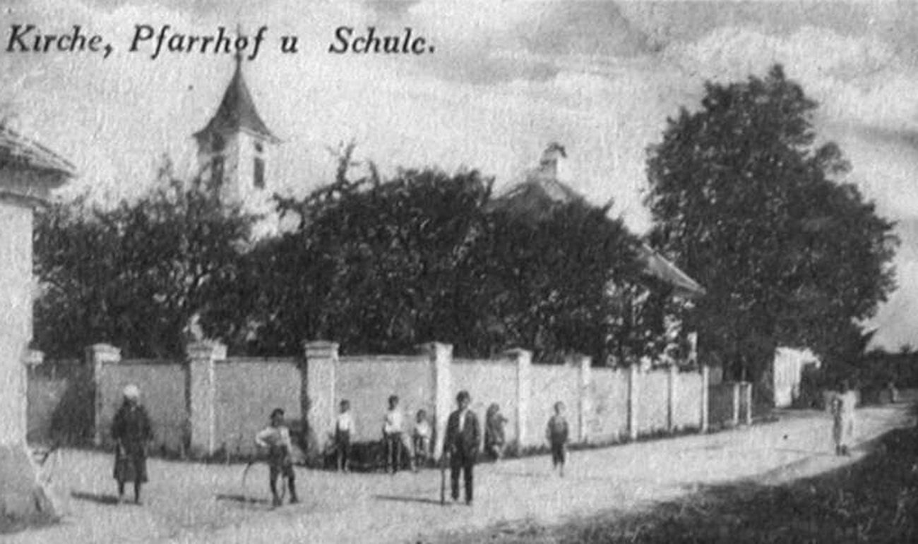 Der alte Pfarrhof, rechts im Hintergrund, 1899