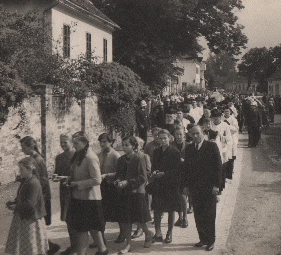 Der neu ernannte Herr Pfarrer, Hochw. Wilhelm Grubmüller, wurde am 28. Juli 1957 in die hiesige Pfarre investiert und bezog den neu erbauten Pfarrhof am 30. April 1958. In der Zwischenzeit bewohnte er das Haus in Altenwörth No. 41.